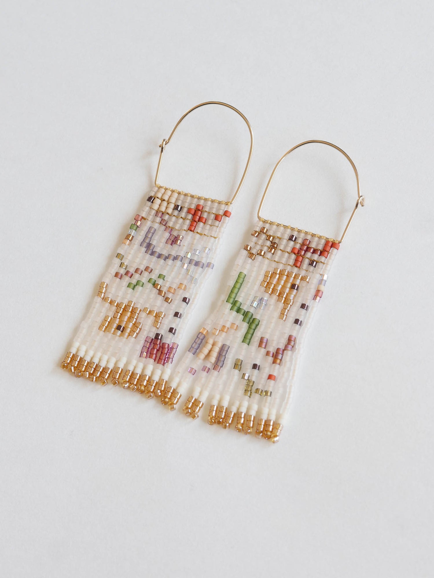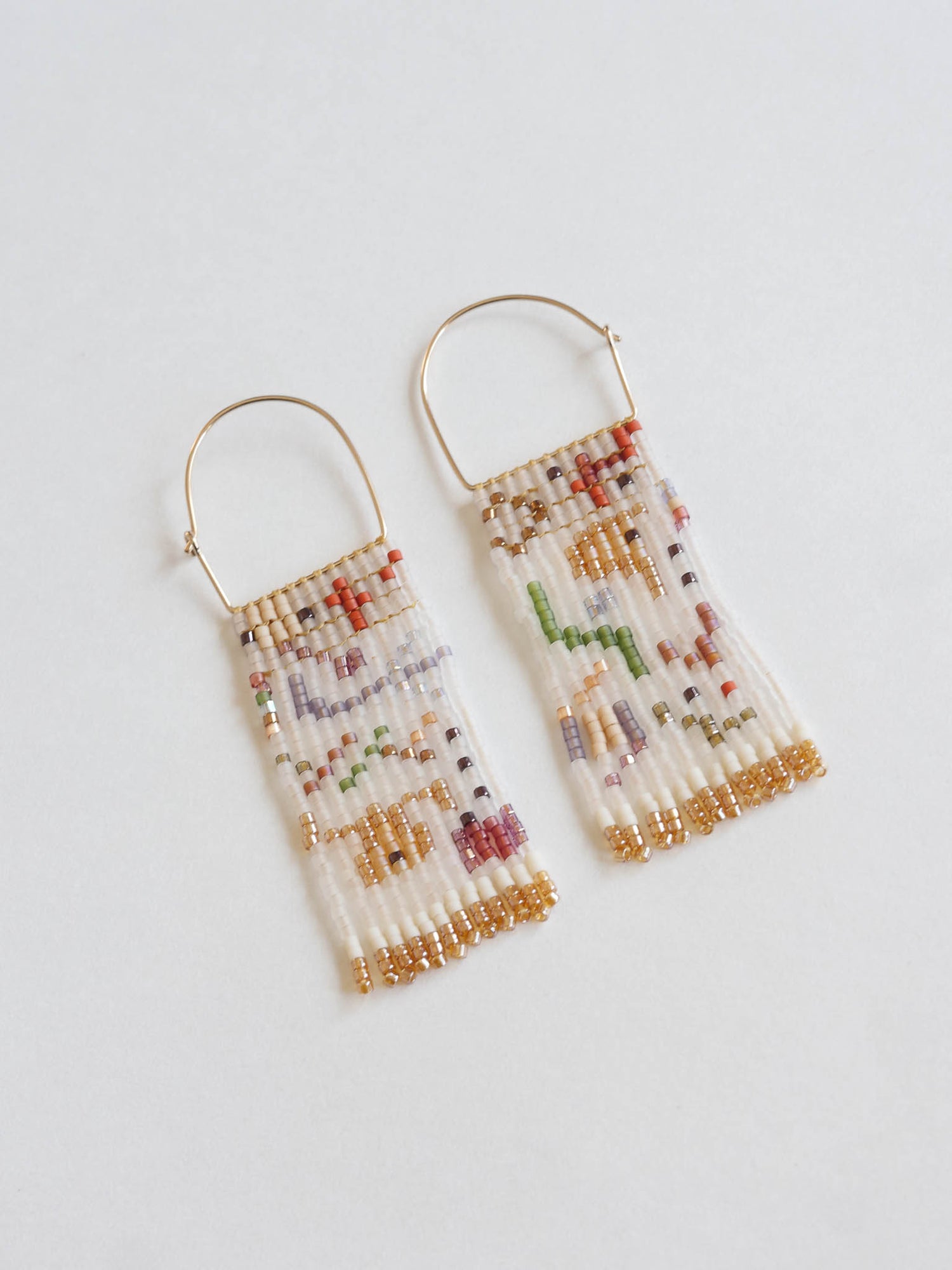 The latest slim tapestry style earrings - A thinner body and a sweet half hoop to dangle from!