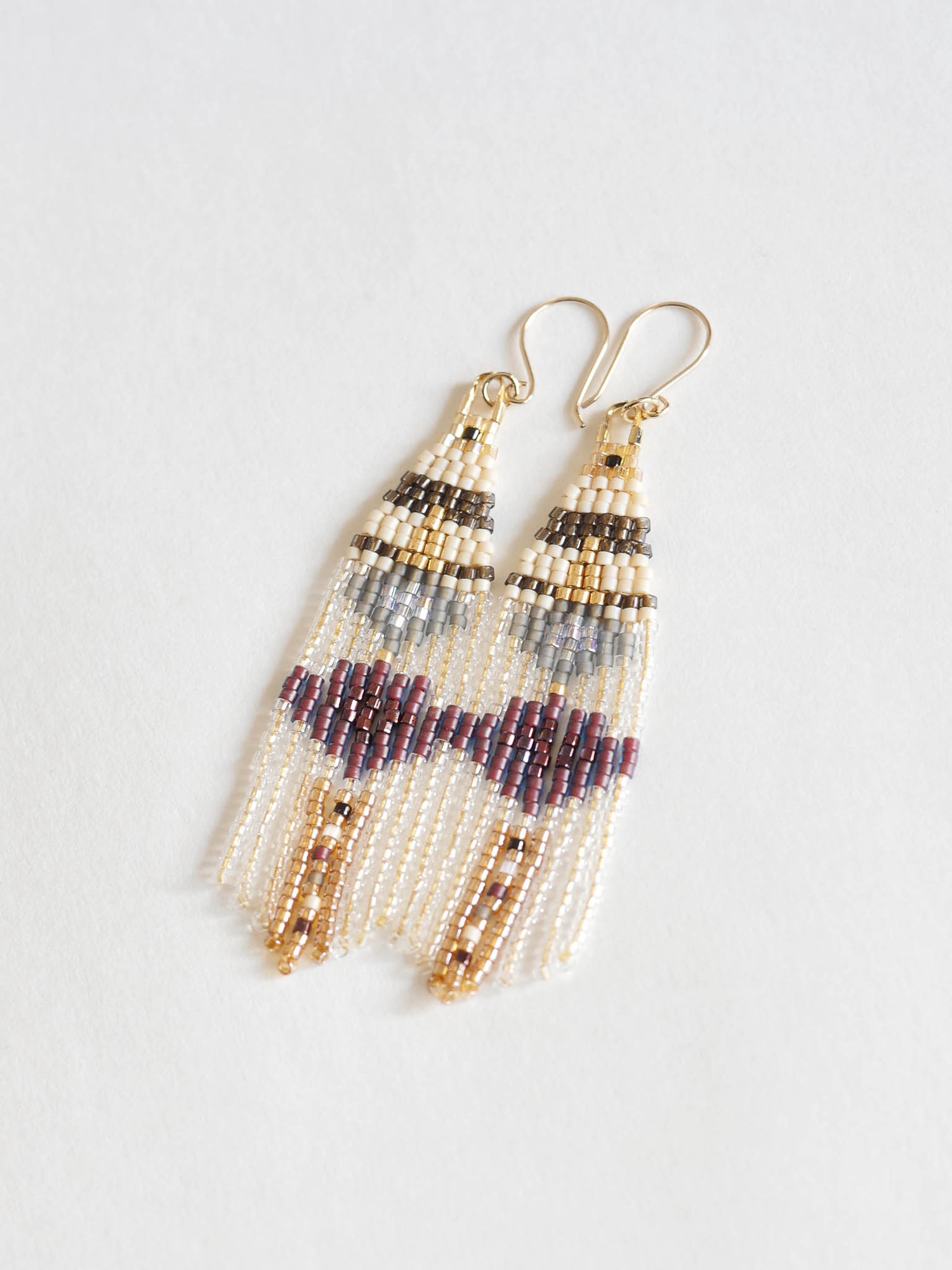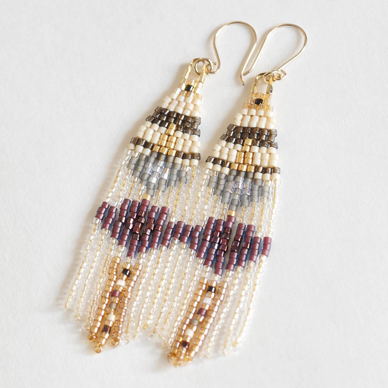 Materials used: two types of Japanese glass beads, golden nylon thread, and the hooks are hand forged 14 KT gold filled wire for sensitive ears.